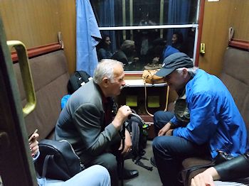 Olimme valinneet Barin sen vuoksi, että sieltä lähti juna pääkaupunkiin Podgoricaan. Halusimme kokea junamatkan, koska sitä kehuttiin netissä. Lähdimme siis hankkimaan lippuja seuraavaksi päiväksi. Oli käveltävä yli kilometri rautatieasemalle, mutta sade oli onneksi lakannut. Lähellä asemaa oli ulkoravintola, josta tuli herkulliset tuoksut. Grillattiin lihaa. Asemarakennus näytti autiolta, eikä muita ihmisiä näkynyt. Ovi oli kuitenkin auki. Vanhempi nainen istui lasikaapissa ja kerroimme matkamme päämäärän ja päivämäärän. Hän oli kyllästyneen näköinen, mutta tuntui tajuavan tarkoituksemme. Liput maksoivat 2 €/kpl. Matkaa olisi 52 km. Kun kysyimme aikataulua, nainen vain väyneesti osoitti lappua lasissa. Otettiin siitä kuva. Lippu kävisi näköjään mihin aikaan hyvänsä. Päätimme lähteä 11:38.